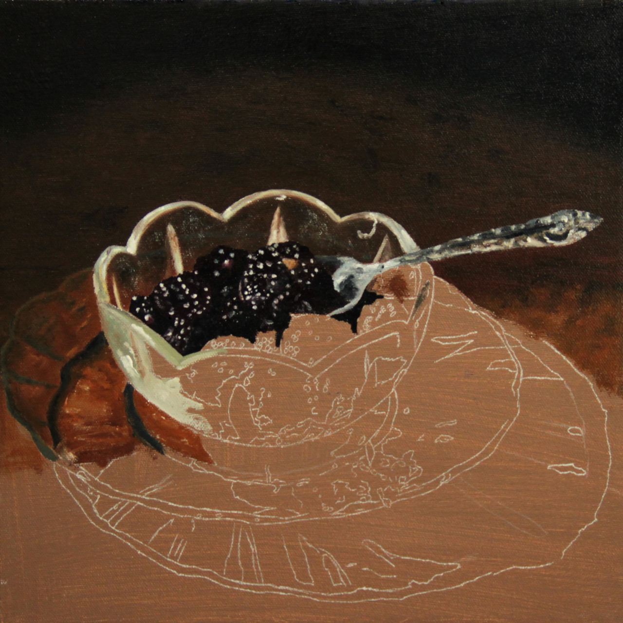 I am currently working on this still-life of a crystal bowl of blackberries. Size is 12x12 and I plan to complete it tomorrow.