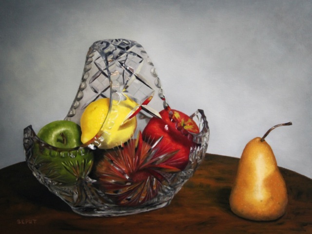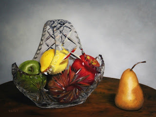 I decided to paint glass with a lighter background for a change. I always liked the dark backgound against glass because of the pop it gives the reflections... but I also am pleased with the lighter background.